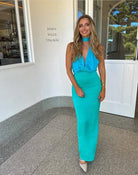 The Wolf Gang Oahu Slip dressIn blue & greenZip up at back adjustable neck linePerfect wedding guest, formal or birthday dress