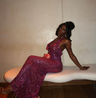 A soft, metallic yarn woven with eye-catching sequins, Verona is a shimmering sensation in raspberry. A delicately constructed cowl neck and semi-sheer knit add a hint of allure without revealing all. Made to step into the spotlight.