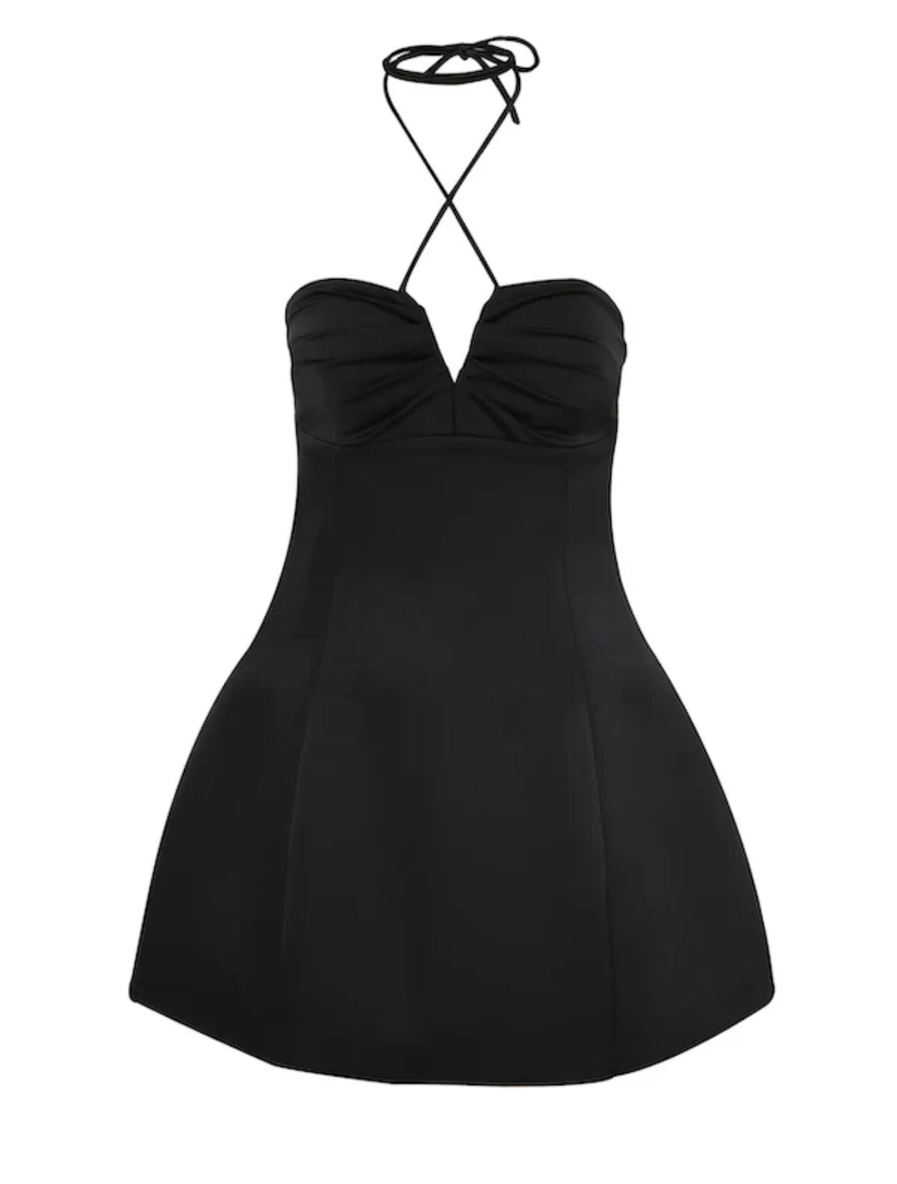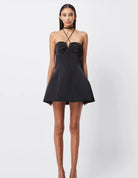 The Vestige Mini Dress in black is a fresh take on the little black dress. Showcasing a bell shaped silhouette, this dress has a modified sweetheart neckline with tuck details. Tie the shoestring straps in a variety of ways to highlight your decolletage, while the classic colourway works for day and night.