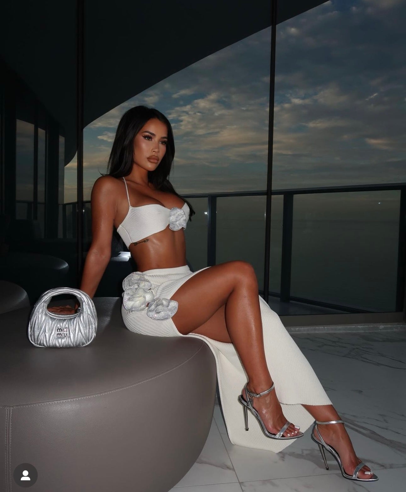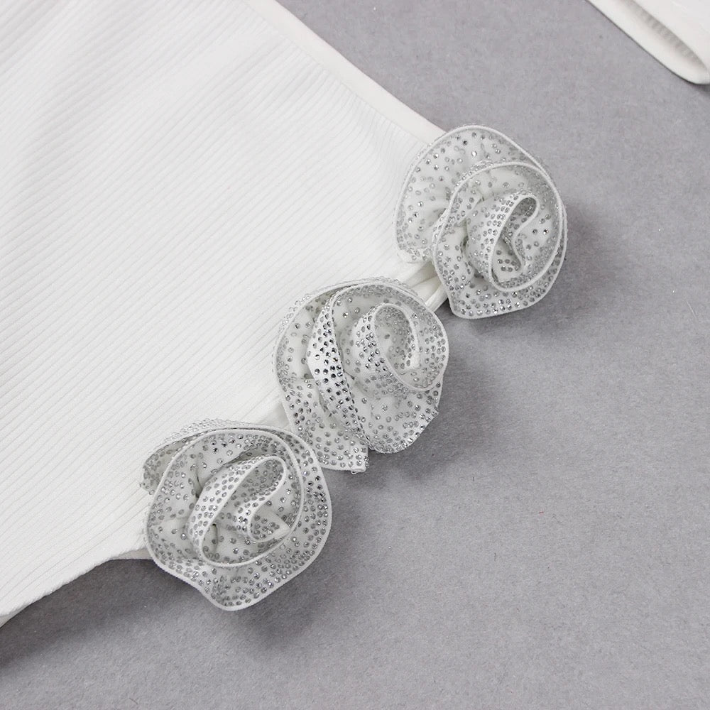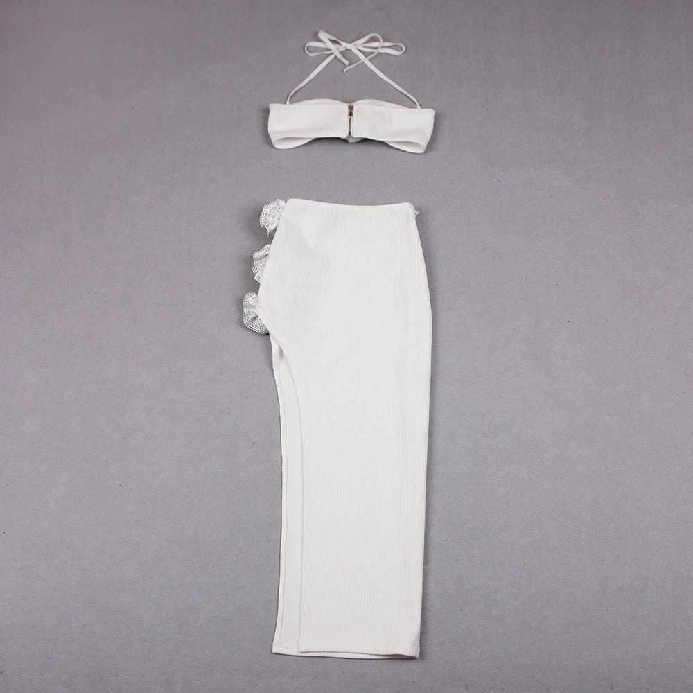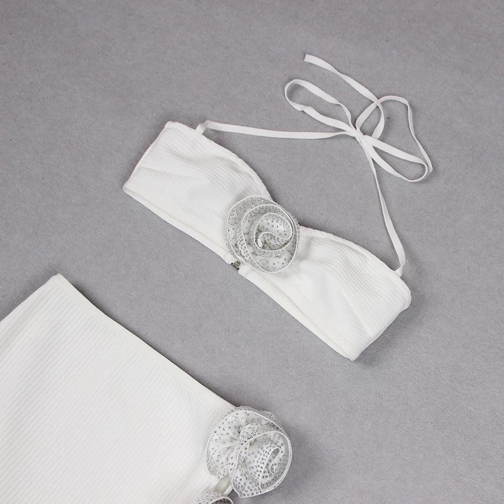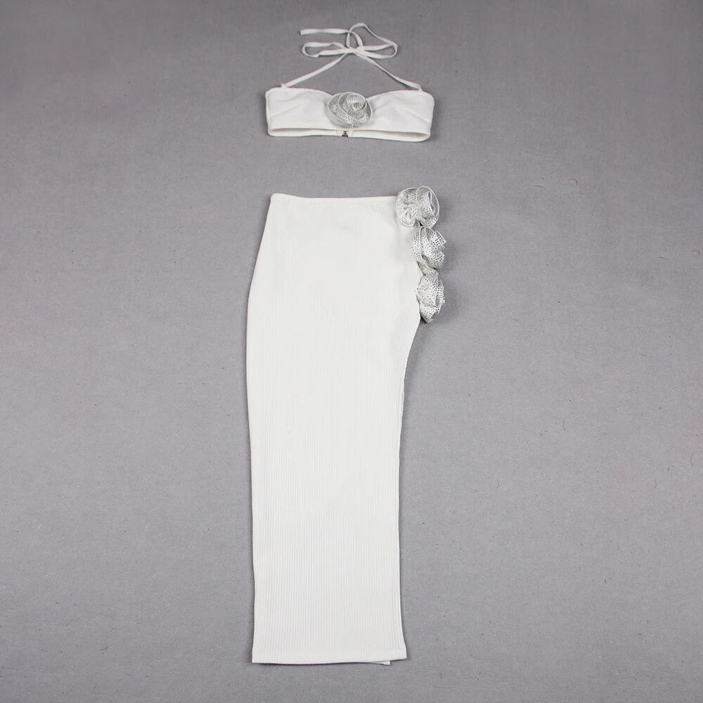 White two piece flower skirt set