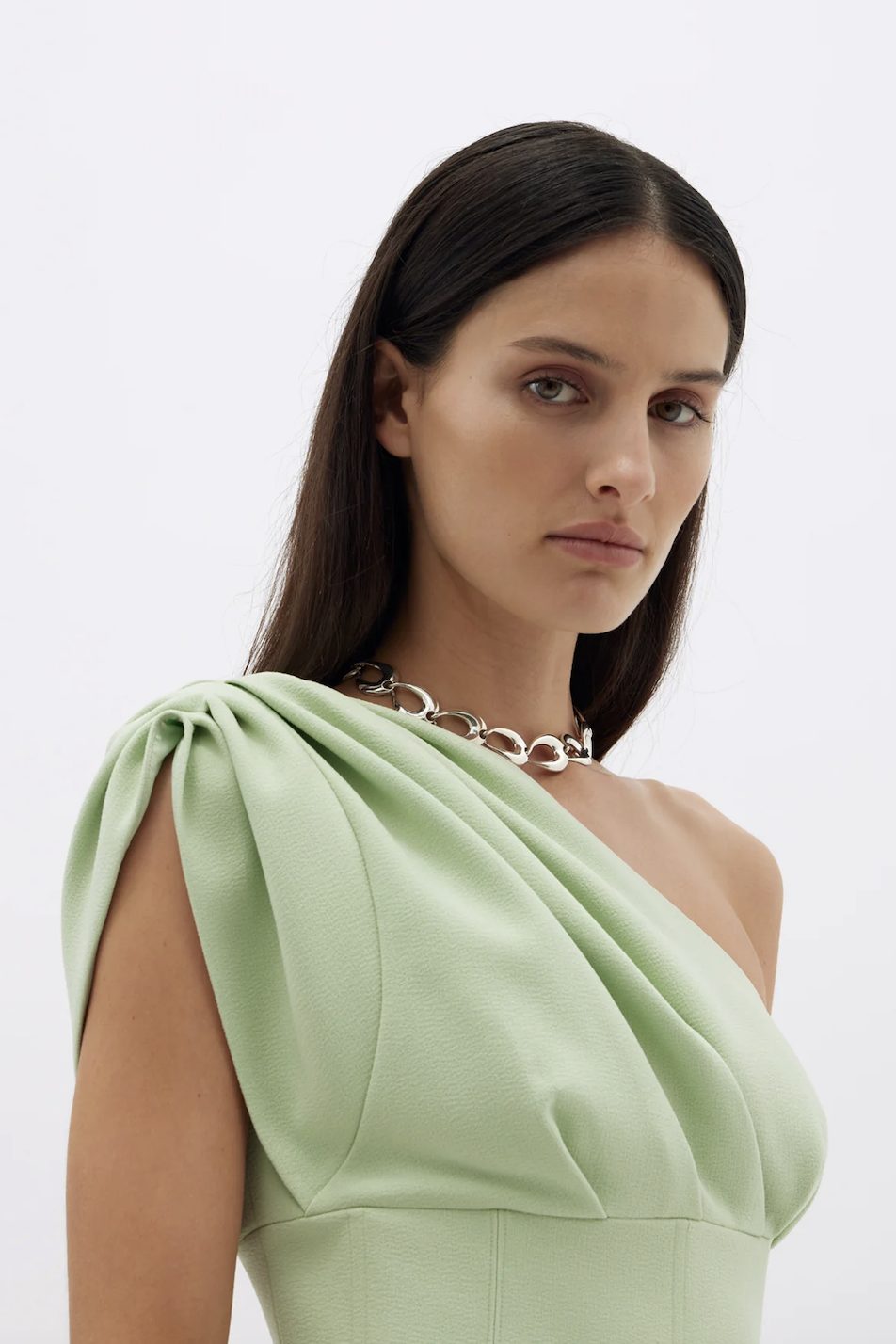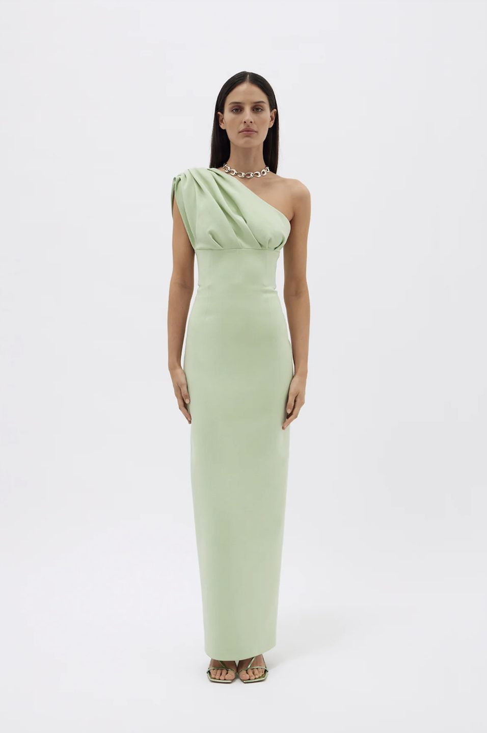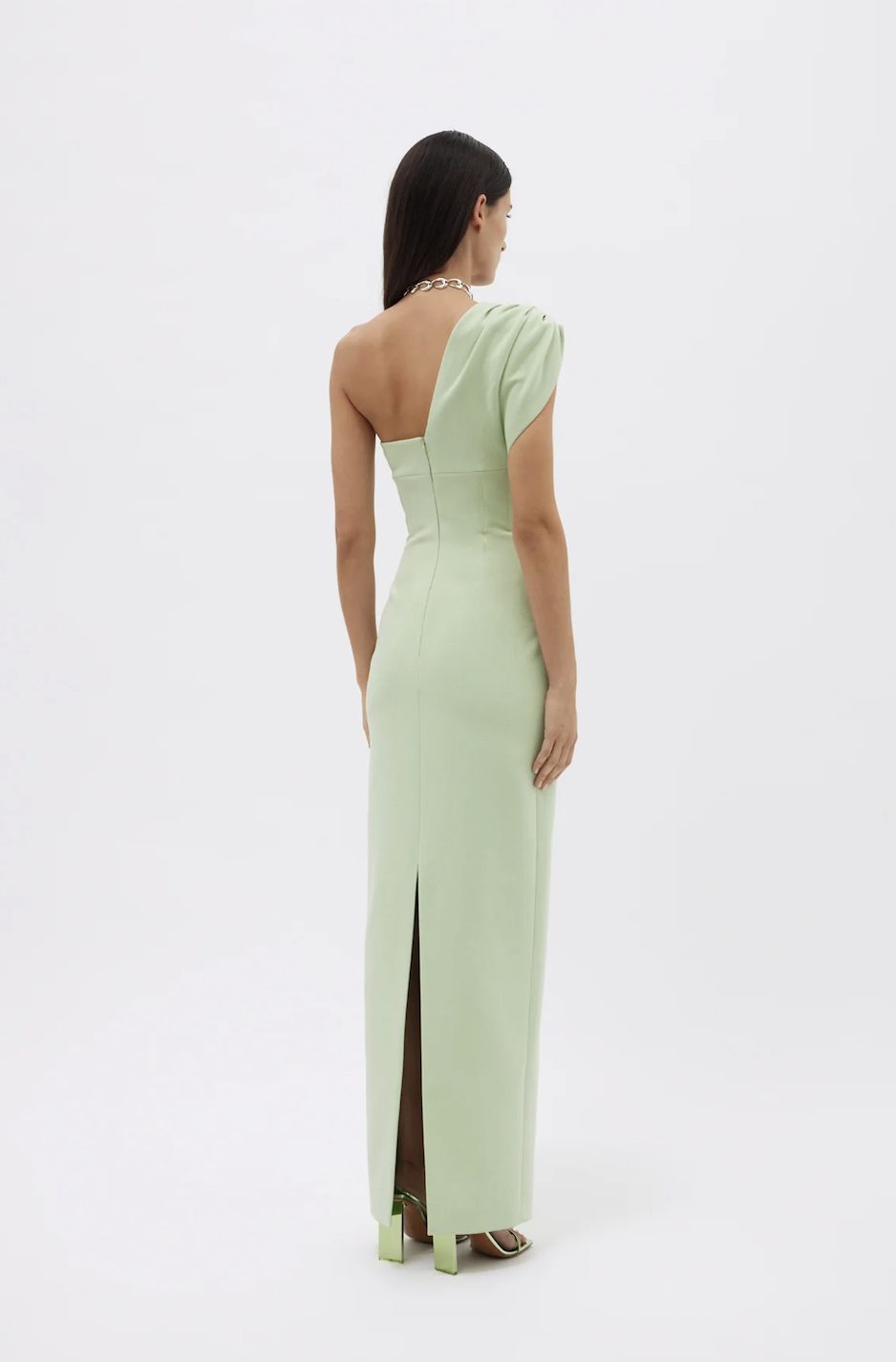 In a nod to timeless elegance, the Winnie Gown features one shoulder detailing and falls to a full-length, straight skirt style. With cinched waist and slight ruching detail across the bust, the Winnie Gown has a feminine and fresh feel.Internal boningShoulder padsSlight stretch, designed to skim the bodyCentre back zipCentre back splitOne shoulder styleRuched fabric detailing across one shoulder