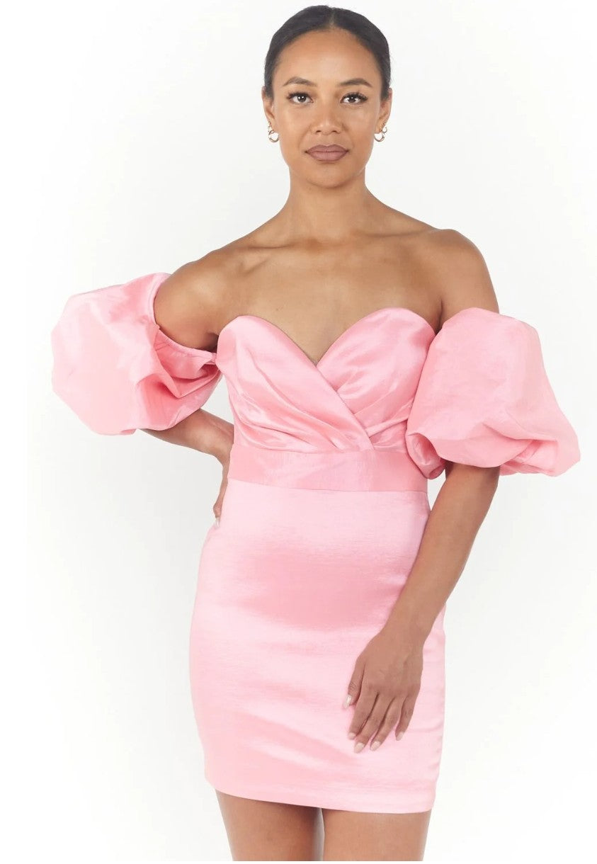 Make prom a night to remember in this strapless satin minidress featuring removable puff sleeves for a versatile look.24" length (size 6 AU)Off-the-shouler sweetheart neckRemovable elbow-length sleeves50% polyamide, 50% polyesterDry cleanImportedItem #6956380
