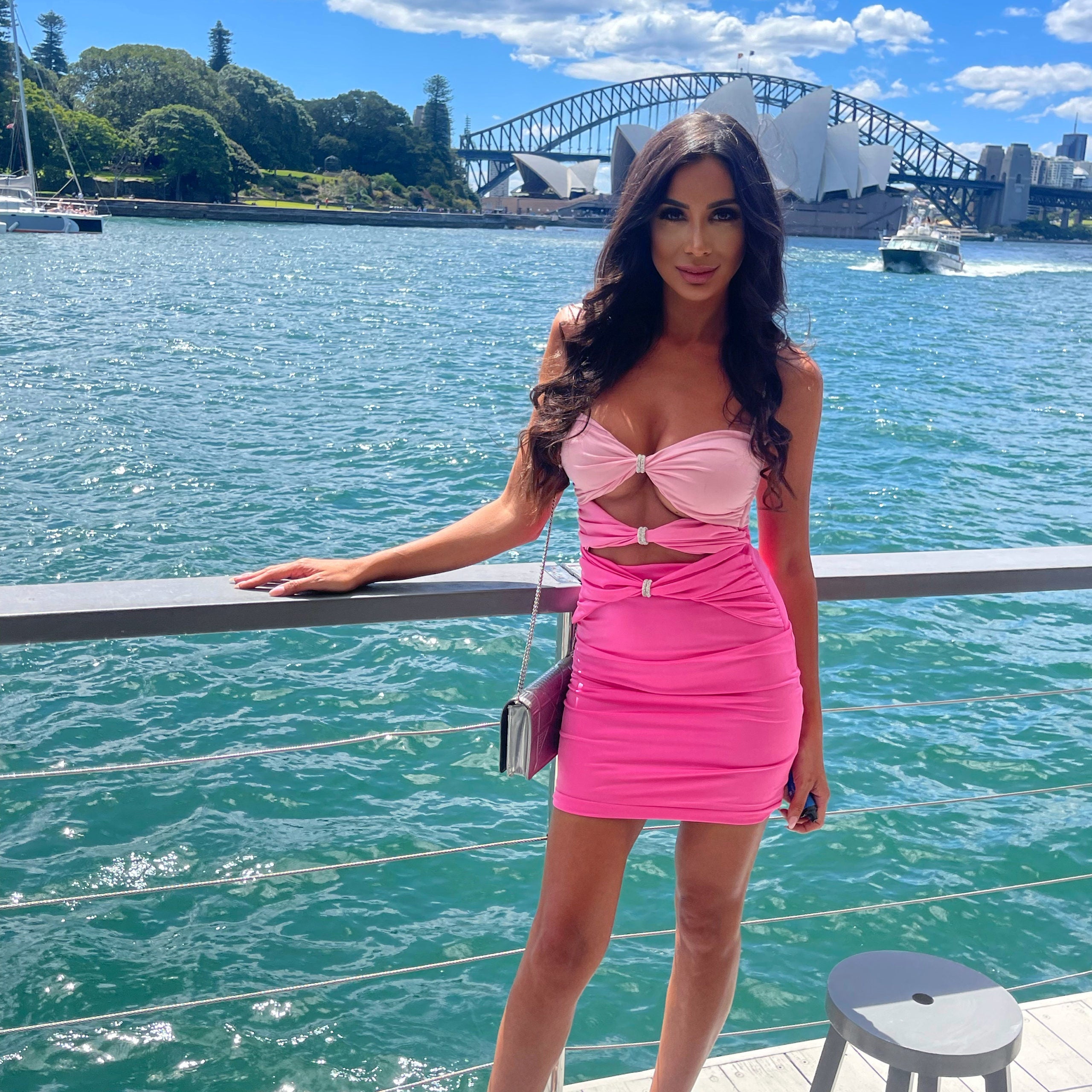 This dress has been customised to a mini dress from the original maxi dress. Would fit size 6-8.