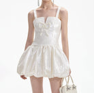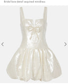Self-Portrait bridal bow embellished sequin and pearl bubble mini dress.