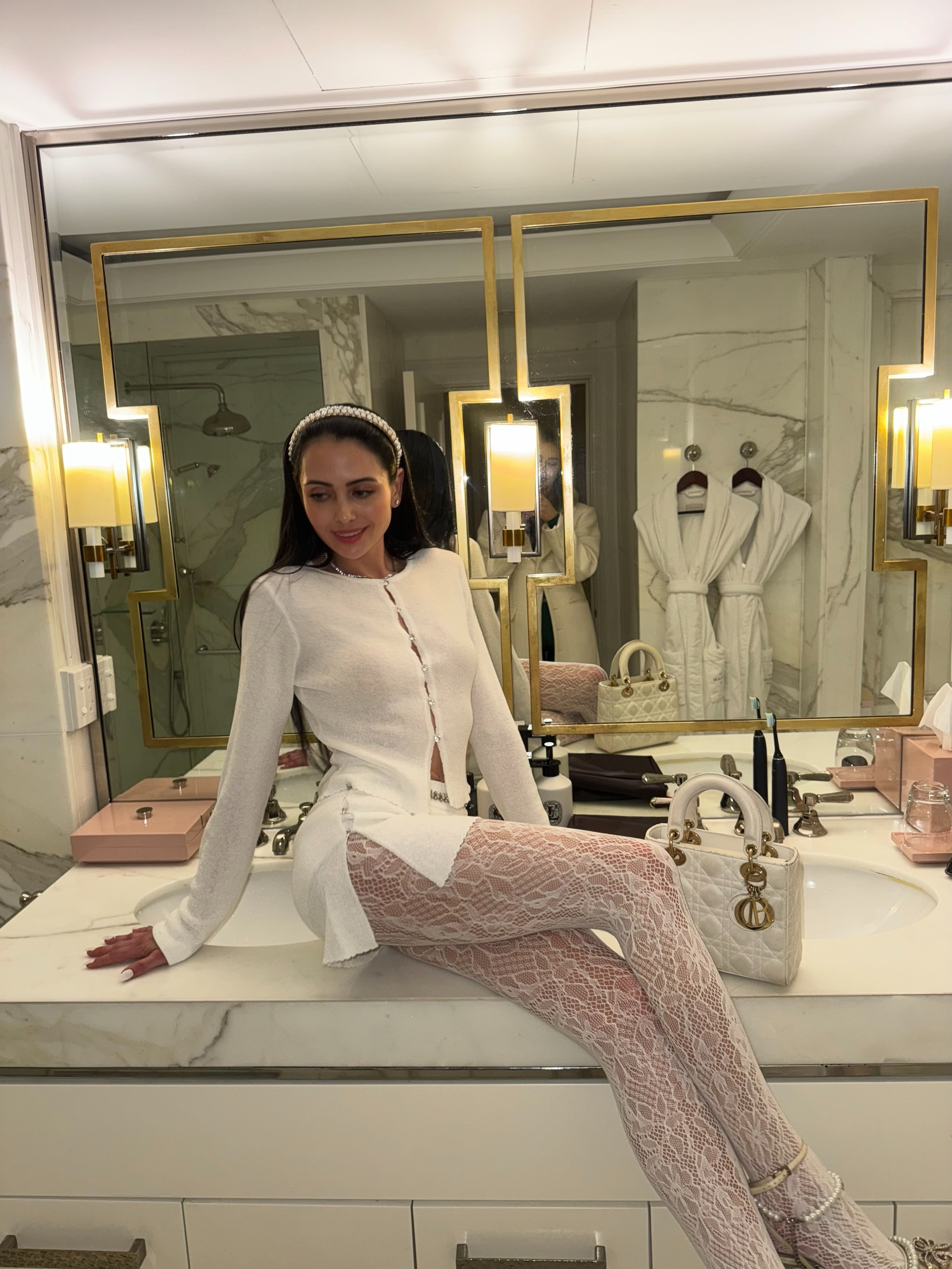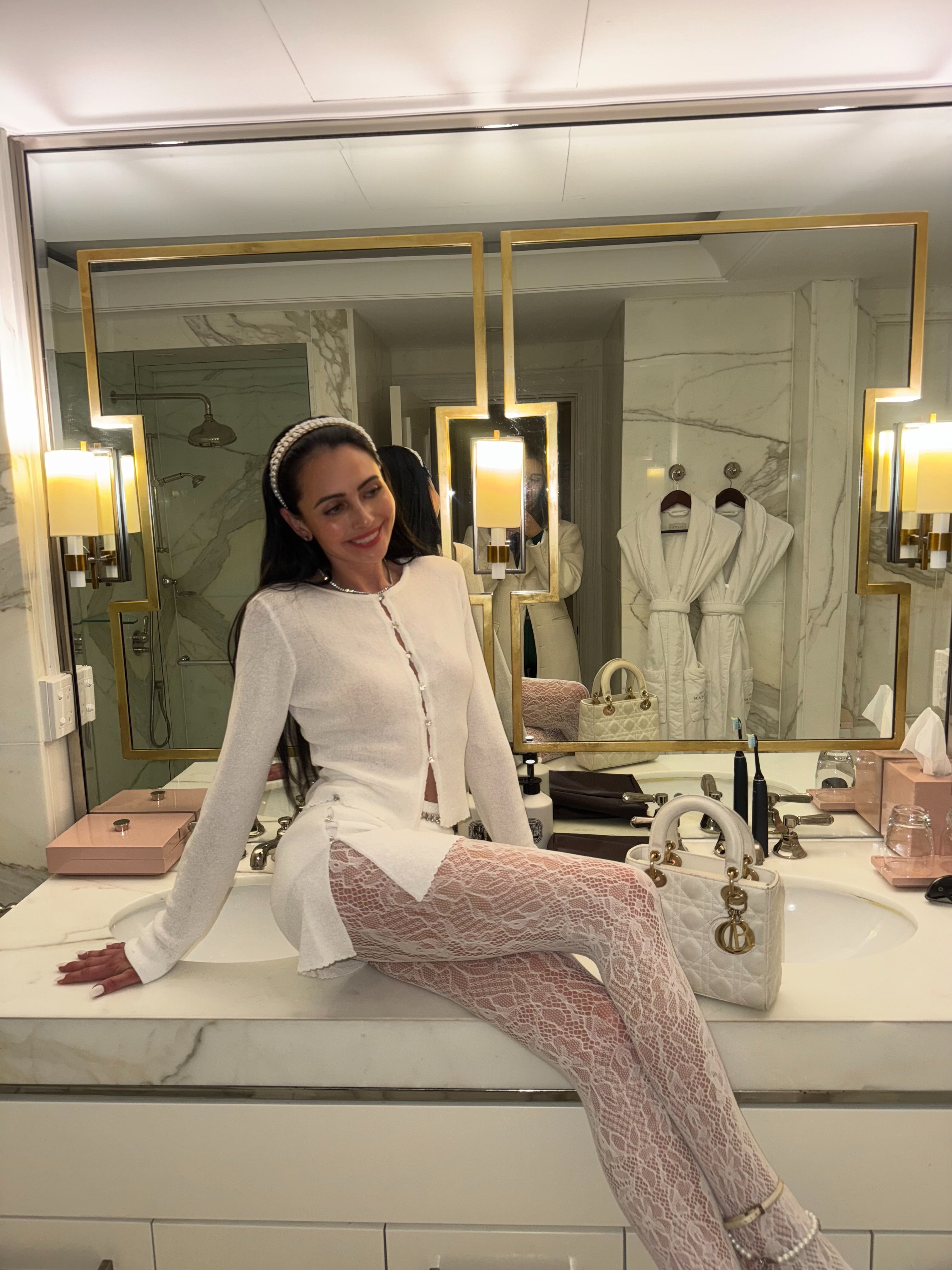I am a size 4 which is an xxs, so this set is big on me which is why I have styled with high waist stockings and a belt)