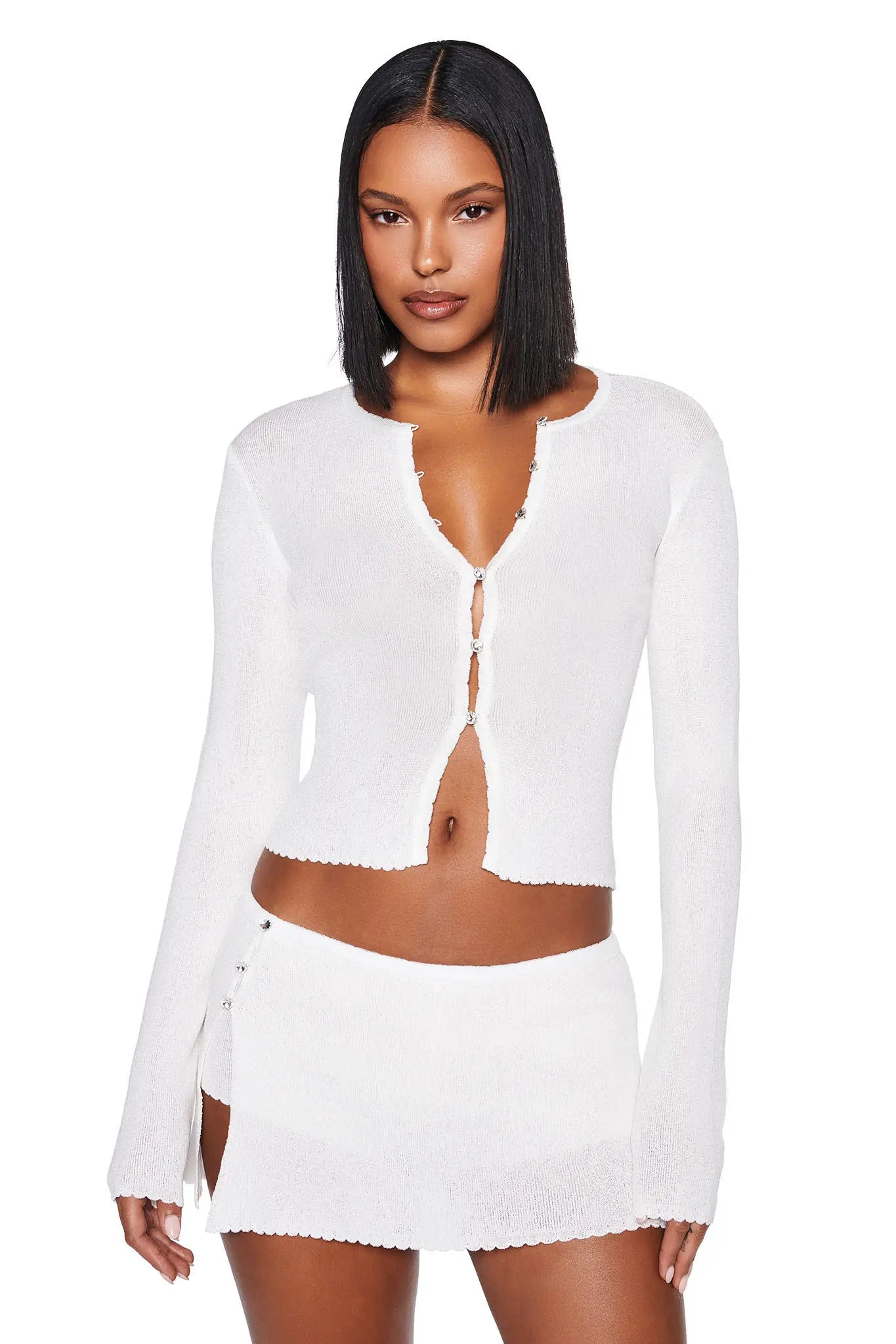 • Featuring clear diamond buttons down the centre front - Can be styled done up or undone