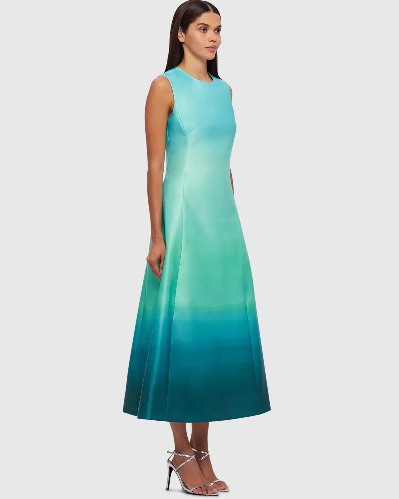 Cleo Sleeveless Midi Dress - Ombre Aqua Leo Lin