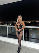 The full length sculpting Nadia Jumpsuit updated for the holiday season in swarms of iridescent rhinestones over the chest, body and legs arms. Featuring the iconic cutout peep holes and brand new snake print lace, sweeping your curves to perfection.POSTER GIRL's brand logo is always stamped into the lower back of each garment, confirming its authenticity.This jumpsuit is One Size fits most UK 6 - 10