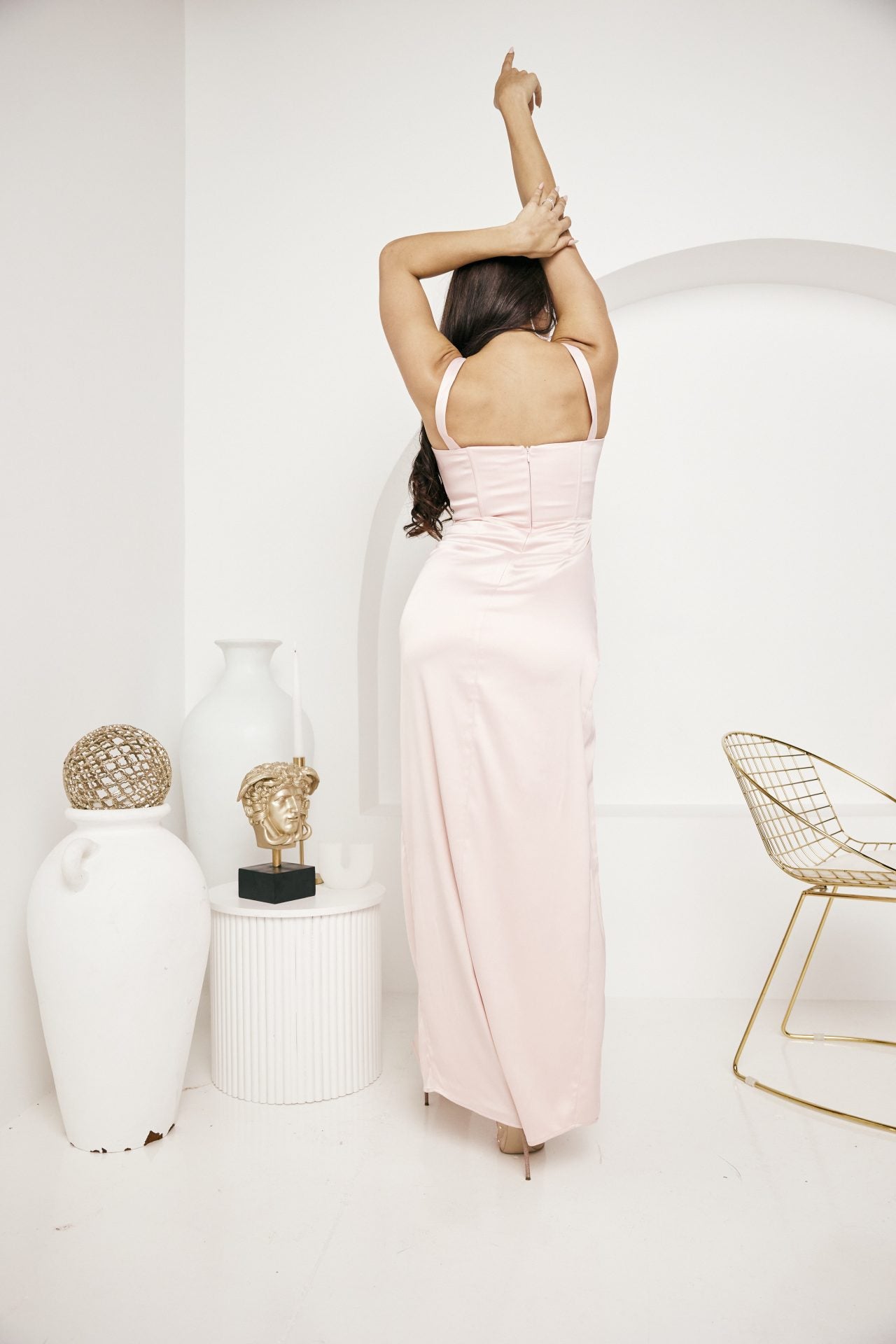 The dress of the season, the Peony Dress.The Peony dress features a flattering bodice and gathering ruching detail at the split which is sure to draw eyes.It is the perfect Bridesmaid dress.
